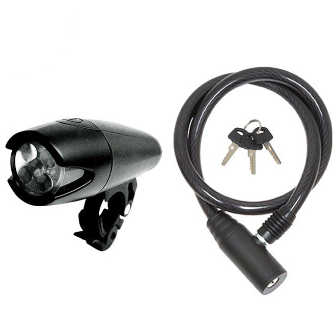 自転車 カギ ライト セット 2点 防水 LEDライト フロントライト 電池式 ワイヤーロック カギ 60cm 600mm ショートワイヤーロック 自転車用アクセサリー クロスバイク マウンテンバイク スポーツ アウトドア サイクリング 送料無料