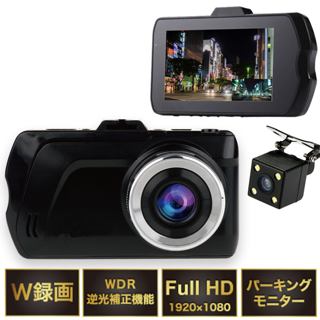 ドライブレコーダー 高画質 フルHD 200万画素 12V 24V W録画 自動録画 Gセンサー WDR パーキングモニター 工事不要 エンジン連動 手ぶれ補正機能 Full HD 動画 静止画 送料無料
