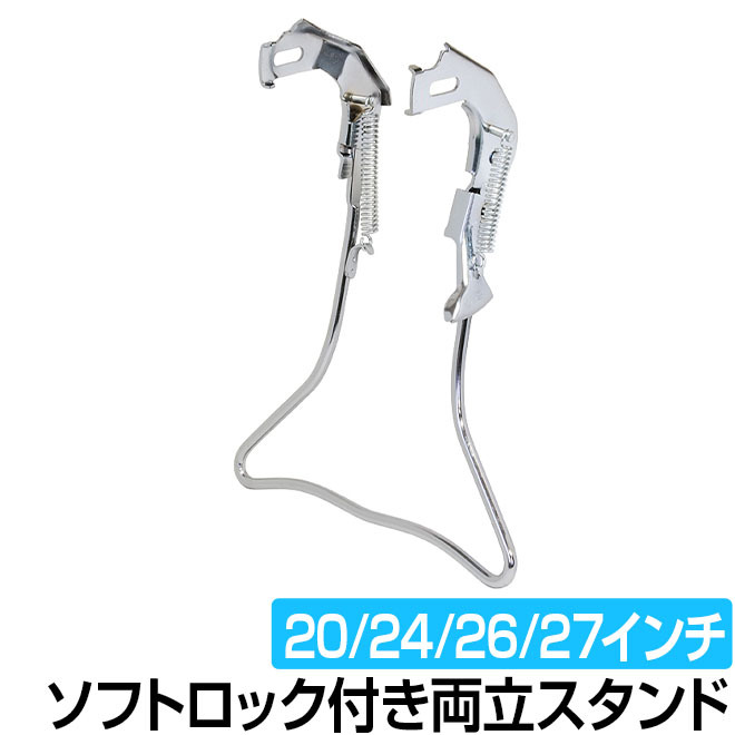 自転車 パーツ スタンド 両立 ソフトロック スチール クロムメッキ 外装正爪両立スタンド W-2 20インチ 24インチ 26インチ 27インチ