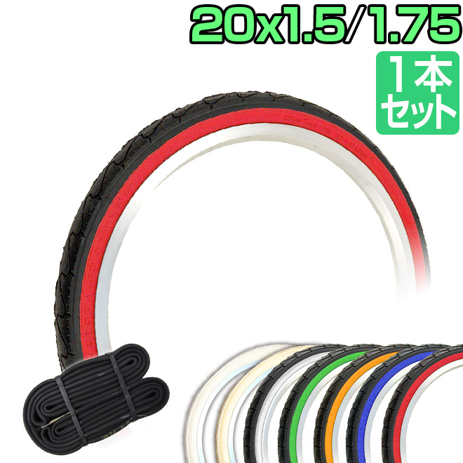 自転車 タイヤ 20インチ タイヤ チューブ 1本セット 20x1.50 20x1.75 カラータイヤ SR-076 スリック タイヤ シンコー SHINKO 自転車タイヤ ペア巻き 折りたたみ自転車 ミニベロ 小径車 20インチタイヤ