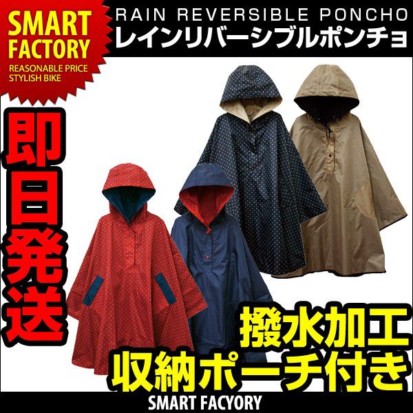 レインポンチョ 自転車 レディース リバーシブル 防水 撥水加工 収納ポーチ付き レインコート 通勤 通学