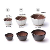 | 用途に合わせて使い分けできる3サイズ。側面の釉薬は白と黒の2色あります。 3サイズ重ねてすっきりスタックできるから収納にも便利です。 |