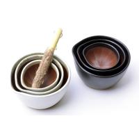 | 用途に合わせて使い分けできる3サイズ。側面の釉薬は白と黒の2色あります。 3サイズ重ねてすっきりスタックできるから収納にも便利です。 |