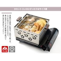 | カセットコンロにぴったりなサイズ感で、お店の雰囲気を演出。 本格的な四角い形状は、仕切り板つき。 具材をきれいに分けられるのはもちろん、味の混ざりすぎや煮崩れも防げて、最後までおいしく楽しめます。 |