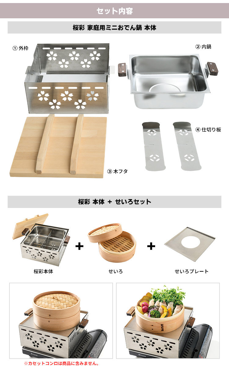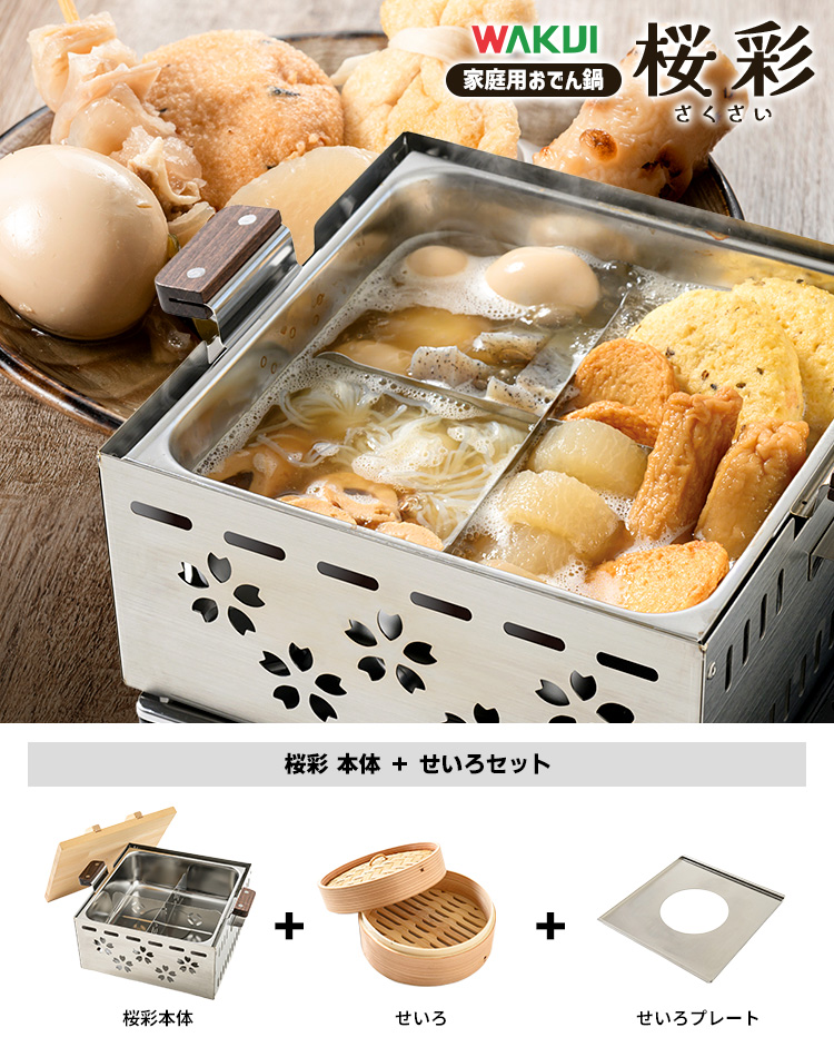 | 商品名 | ワクイ 桜彩(さくさい) 家庭用ミニおでん鍋 せいろ付セット |