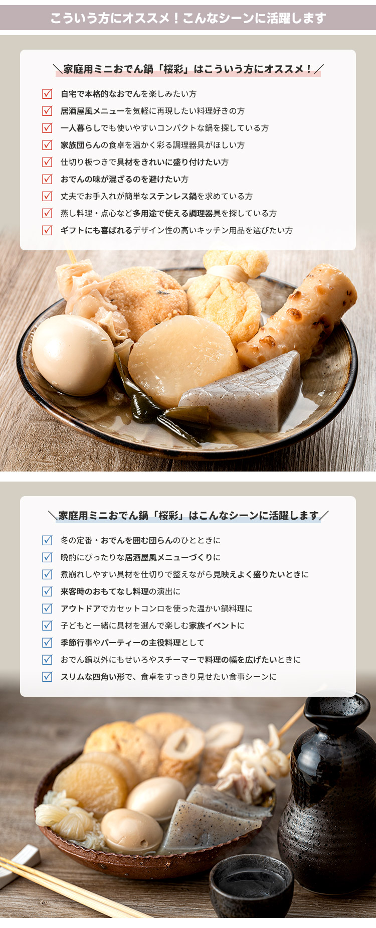 | 人気の家庭用おでん・湯どうふ鍋がリニューアル! |
