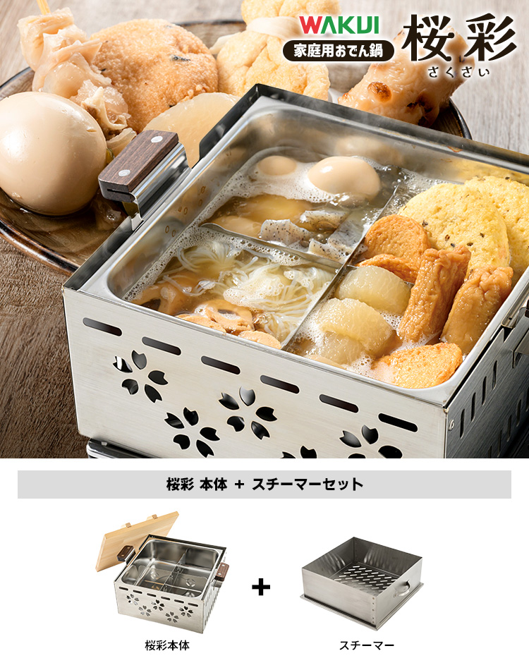 | 商品名 | ワクイ 桜彩(さくさい) 家庭用ミニおでん鍋 スチーマー付セット |