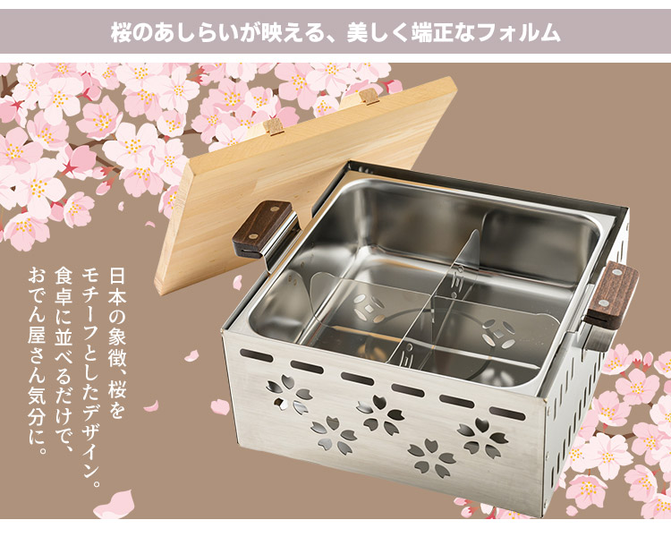 | 桜のあしらいが映える、家庭用おでん鍋 |