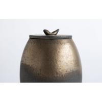 | 多孔質の陶器の中に焼酎を入れ、数日ねかせることで、味がまろやかに美味しくなると評判の焼酎サーバー。 一見真黒な釉薬ですが、よくみると金色を帯びて渋く光るお洒落なデザインです。 七寸長シリーズのこの商品は容量約2.2L。 まるまる一升瓶一本分(1.8L)の焼酎を余裕を持っていれることができます。 おうちに限らず、お店に置くのにも程よい大きさです。 それぞれに違う銘柄の焼酎を入れてもいいですね。 |