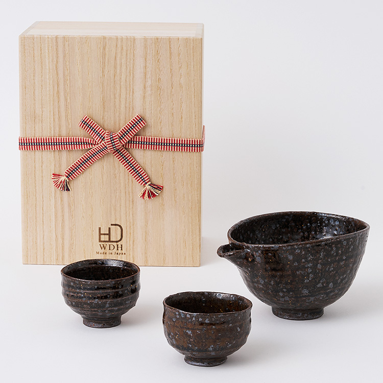 | セット内容 | 片口×1、ぐい呑×2、桐箱、英訳付きリーフレット |