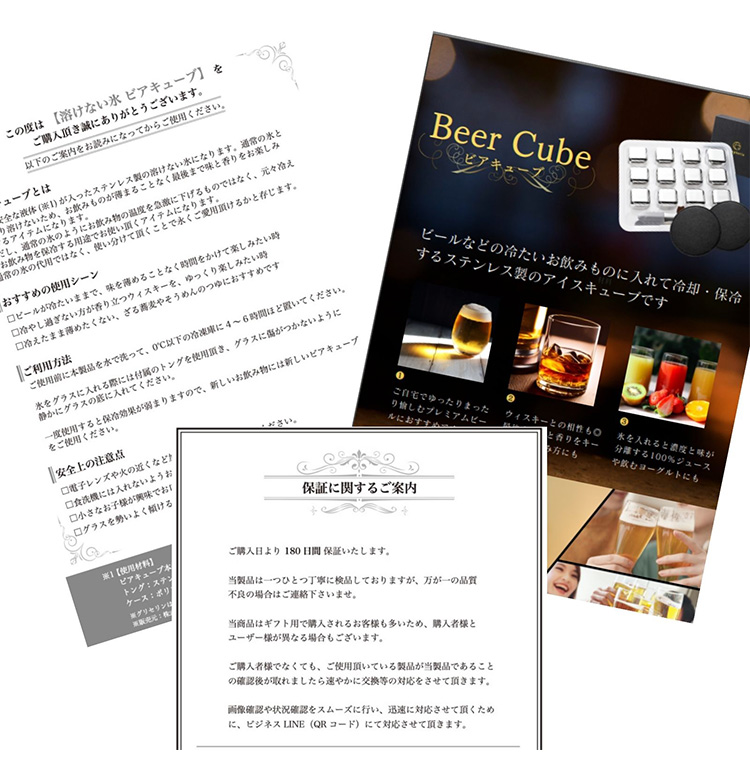 | 材質 | 【ビアキューブ】SUS304ステンレス 【キューブ内容液】純水、食品用グリセロール |