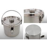 | 料理の冷蔵庫保存、温め、持ち運びまでを実現するオールインワンキッチン用品、それが給食缶ミニ。 蓋部分にシリコンゴムパッキンが付いており密閉してくれるため、汁物を入れても中の物がこぼれにくい設計です。 容器内に熱い汁物などを入れた場合、時間の経過と共に気圧が変わり蓋が取りづらくなりますが、蓋についているツマミを押すことで外気が容器内に入り気圧差がなくなるため、簡単に蓋を外すことができます。 ガスコンロ・IHどちらでもお使いいただける製品です。 |