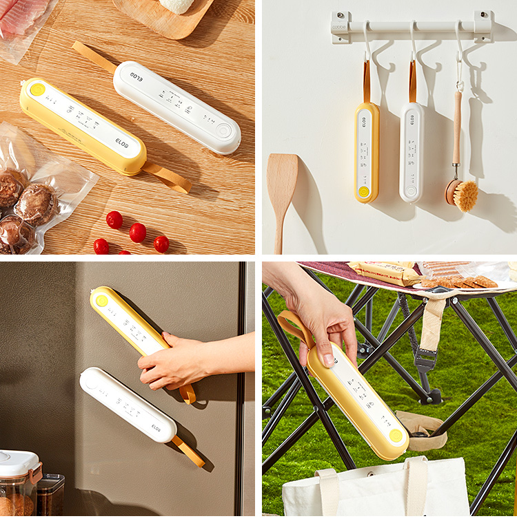 | 手のひらサイズの真空パック機。USB充電式なのに空き缶も潰せる真空吸引力を搭載。マグネットで貼り付けて保管できるので場所を取らずに収納。アウトドアでも活躍。 |