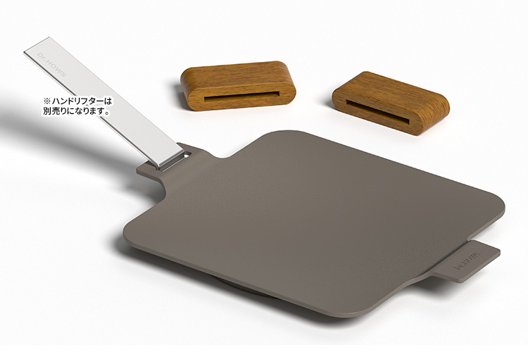 | IHやコンロ火をはじめキャンプやアウトドアの直火、電気コンロでのご使用が可能です。 さらにミニサイズでは取っ手がはずれるのでオーブンでの使用が可能になりました! グリル料理や焼き目の付けたい料理にも活躍してくれます。 Dr.HOWS トゥインクルミニコンロにぴったり乗るサイズになっていますので、コンロで温めながらわいわい楽しむこともできます。 本体に使用されるアルミニウムは熱伝導率がよく、さらに遮熱効果に優れているので保温効果が高く、出来立ての料理をひとりずつゆっくり楽しんでいただくことができます。 従来のソリッドグリルパンよりも深さがあり、ハンバーグやパスタなどちょっとしたソースが必要な料理にもより便利になりました。 ● チーク材で作った木製の取り外し可能なハンドル ハンドルを外すと本体の片方に細長い穴が開いているので、ハンドリフター(別売)を使用することができます。 |