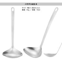 | 汁物をすくいやすい、ハマグリ形状のステンレス一体型おたま |