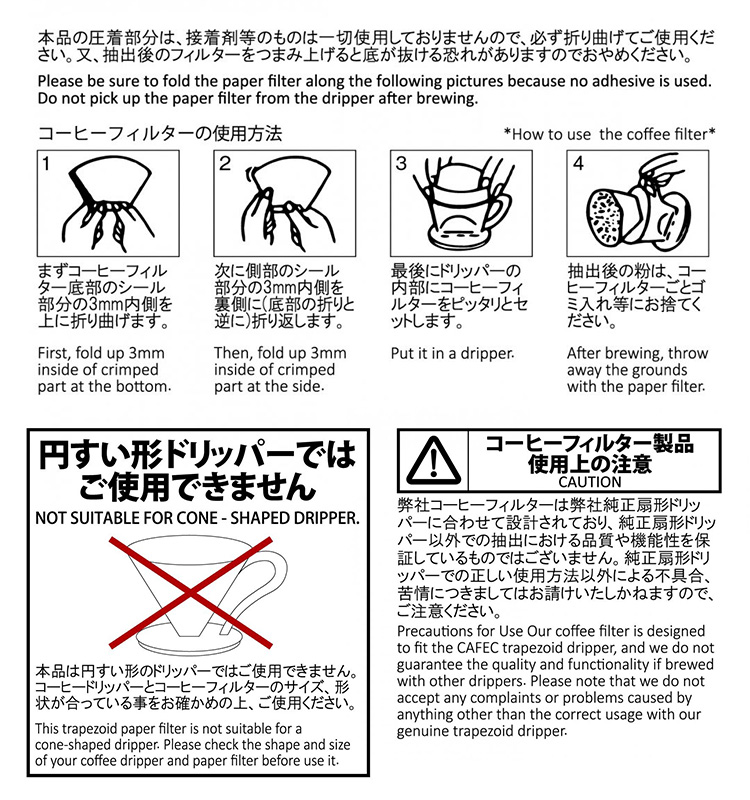 | 【正規販売店】JHDC(ジャパンハンドドリップチャンピオンシップ)競技で認定されたコーヒーフィルター。二酸化炭素の吸収に優れ、繊維を焼却しても有害物質を発生させません。 |