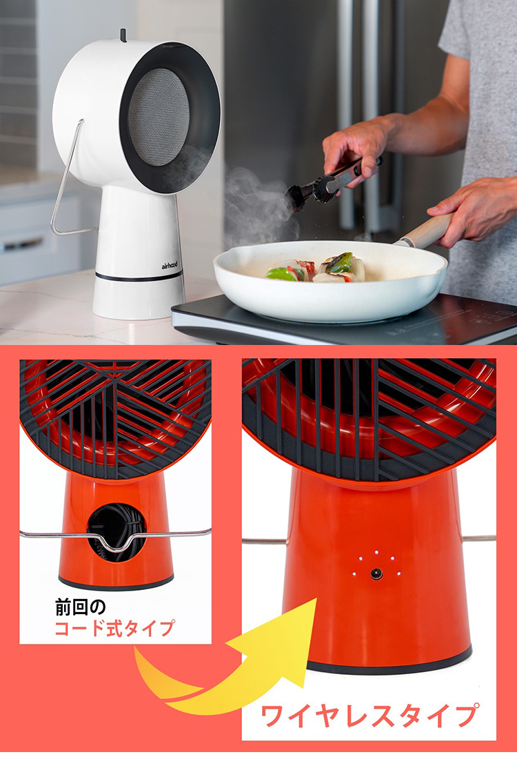 | 【正規販売店】持ち運べる卓上換気扇!ワイヤレスだから場所を選ばずどこでも楽しく焼肉やホームパーティ!3段階の吸引スピードと2種類のフィルターで臭いも油も煙もスッキリ。 |
