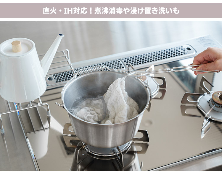 | 直火・IH対応!煮沸消毒や浸け置き洗いも |