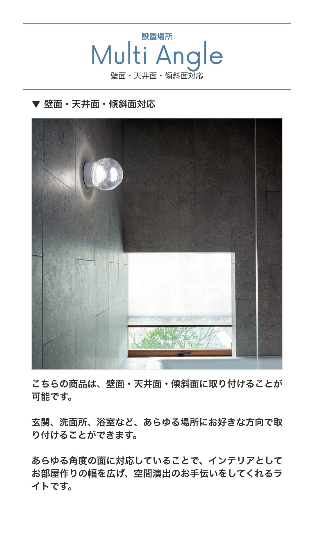 空間を上質に仕立てる、ゆらめく光。高い機能性とデザイン性を両立した、マルチに使えるLEDポーチライト・浴室灯です。
