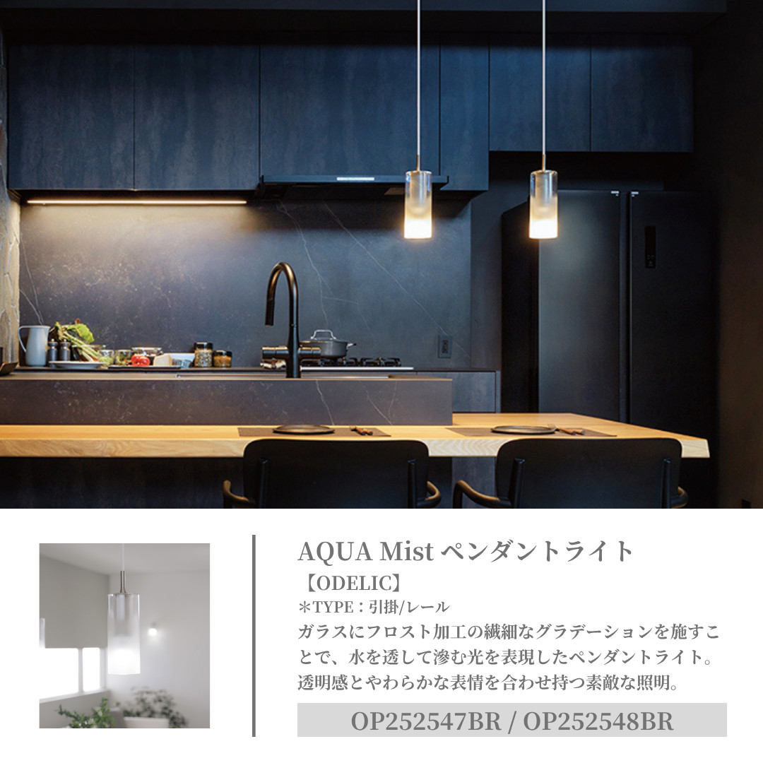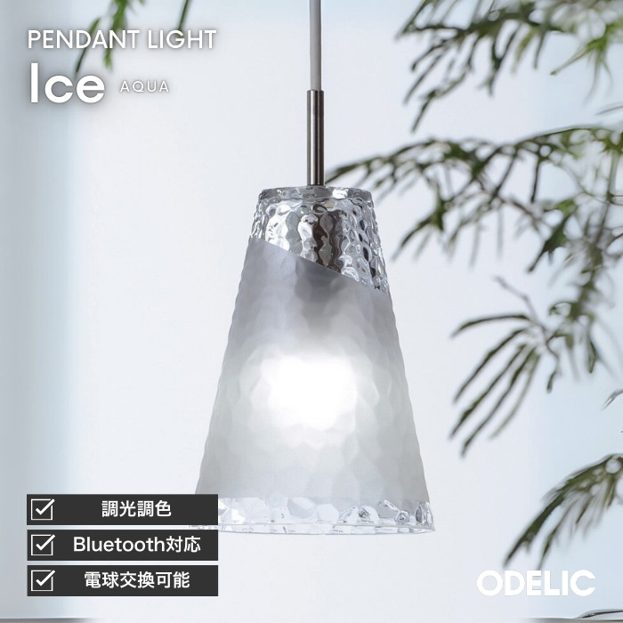 人気シリーズ「AQUA」から登場した〈ICE〉は、まるで氷が静かに溶けていく瞬間を切り取ったような美しさ。ガラスの透明感と、霞がかったようなケシの質感。その対比が、儚さと静けさを同時に描き出します。セード越しに広がる柔らかな光は、空間をやさしく包み込み、日常にひとさじの詩情を添えてくれます。