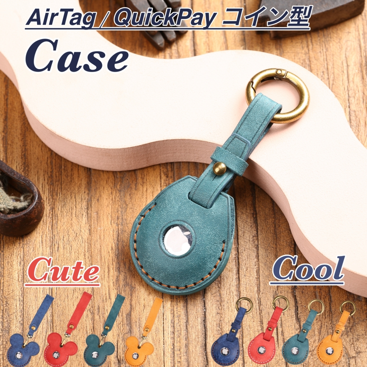 AirTag カバー 本革 QuickPayコイン型 なめし革 ケース キーカバー父の日ギフト