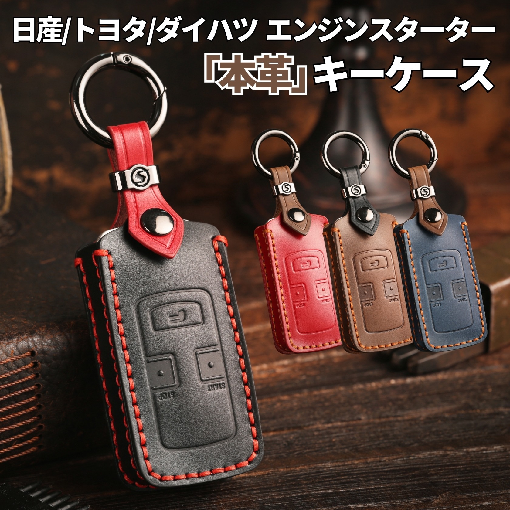 トヨタ 新型ルーミー エンジンスターター ケース ダイハツ カバー 日産 キックス ライズ タント リモコンスタートカバー 本革 3ボタン プレゼント クリスマス