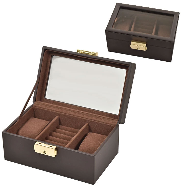 時計2本&リング収納ケース ブラウン W-6000 時計ケース 腕時計ケース ジュエリーケース アクセサリーケース ペアジュエリー 新品