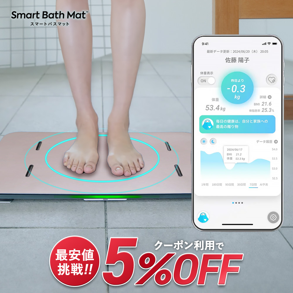 【5%OFFクーポン 12/19 00:00-12/22 23:59】 スマートバスマット Smart Bath Mat 体組成計 モデル バスマット 体重 体組成 記録 issin