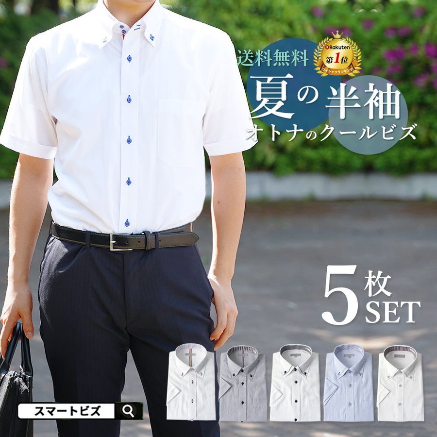 ワイシャツ 半袖 5枚セット [あすつく対応ですぐ届く] メンズ 半袖ワイシャツ Yシャツ クールビズ 形態安定生地 ボタンダウン 白 ホワイト ブルー