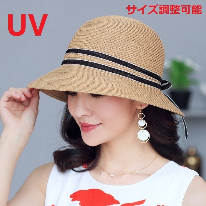 レディース 帽子 つば広 麦わら UV 日焼け防止