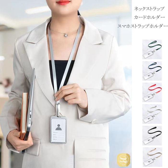 | サイズ | 全長約46.7cm 本体の幅:約1cm ストラップホルダーのサイズ5.6cmx3.6cm カード収納可能部分のサイズ5.3cm×8.5cm(クレジットカード、スイカのサイズ) ※伸縮性のない素材のストラップ |