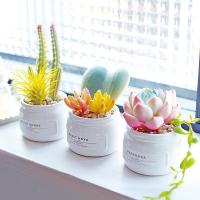 陶器の鉢に HAPPY が詰まったカラフルな多肉アーティフィシャルグリーンの3個セット。置くだけで消臭効果があります。