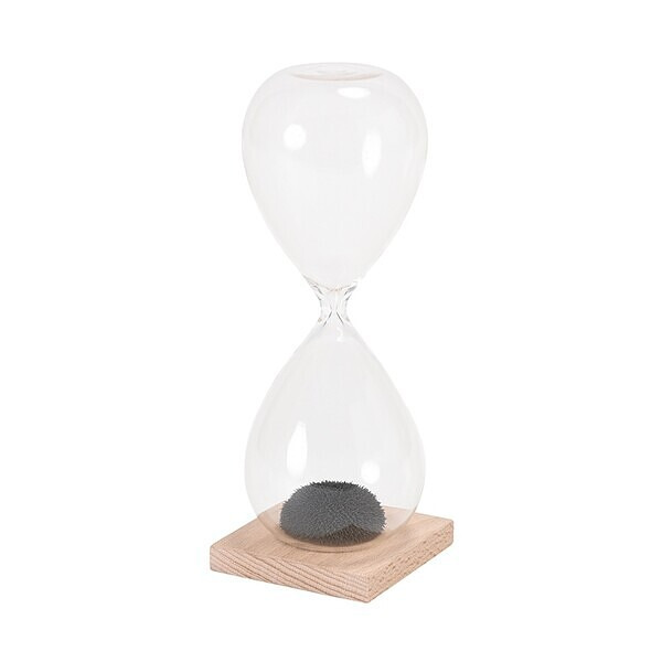 一見シンプルな砂時計。実は台座にマグネットが組み込まれており、中身の砂鉄が落ちると不思議でユニークな形がつくられていきます。子供から大人まで見入ってしまう、思わずひっくり返したくなる遊び心溢れたオブジェです。日常にモダンかつアーティスティックな砂時計を。