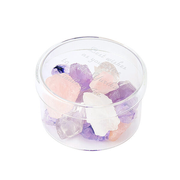 天然石と華やかなガーデニアの香りが付いたジェルを組み合わせたフレグランスアイテム。ガーデニアの花言葉は「喜びを運ぶ」です。天然石の種類はラベンダーアメジスト、ローズクォーツ、クォーツァイト。"愛と美" がテーマになっています。