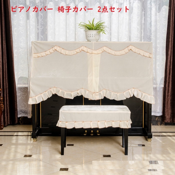ピアノカバー フルカバー トップカバー ベルベット 送料無料 防塵カバー 掛け アップライトピアノ用 かわいい 可愛い 高級 ピアノフルカバー 椅子カバー(一人用) 2点セット お洒落 上品 北欧 シンプル オフホワイト ※ピアノフルカバー 椅子カバー(一人用) 2点セット<br>