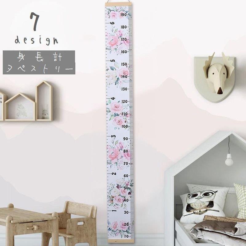 身長計 身長測定 壁掛け キッズメジャー ベビー ジュニア 大人 子供 親子 タペストリー 取付簡単 成長記録 おしゃれ かわいい モノトーン 花 ロ