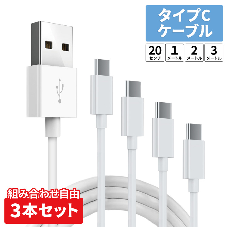 商品概要 | ・お得なType-C USBケーブル3本セット ・インターフェイス: Type-C USBケーブル ・規格: USB2.0規格 ・出力: 20cm 5V2.4A 1m 5V2A 2m 5V1.5A 3m 5V1A ・対応転送速度:最大480Mpbs |