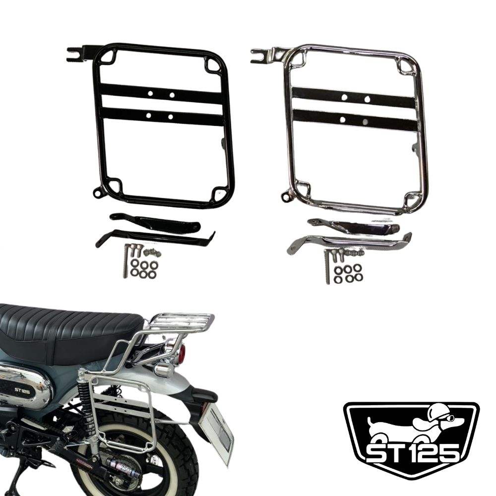 | 製品仕様 | サイドバッグサポート セット(ブラック or クローム) 取り付けステー、ボルト・ナット一式 適合車種:HONDA DAX125 JB04 JB06 |