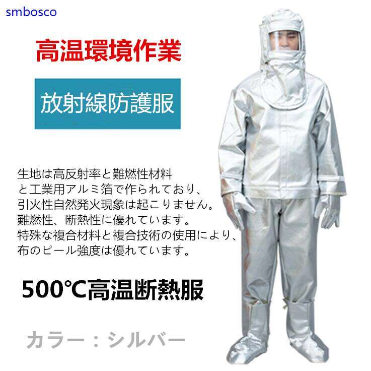500度高温放射線防護服 高温作業断熱服 アルミホイル防火服 分体式 消防用断熱スーツ アルミホイル 放射線防護服 高熱環境用 送料無料