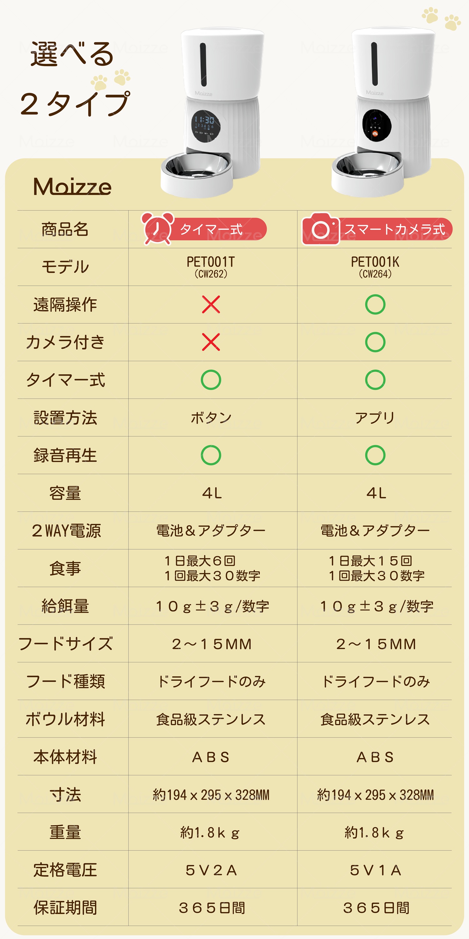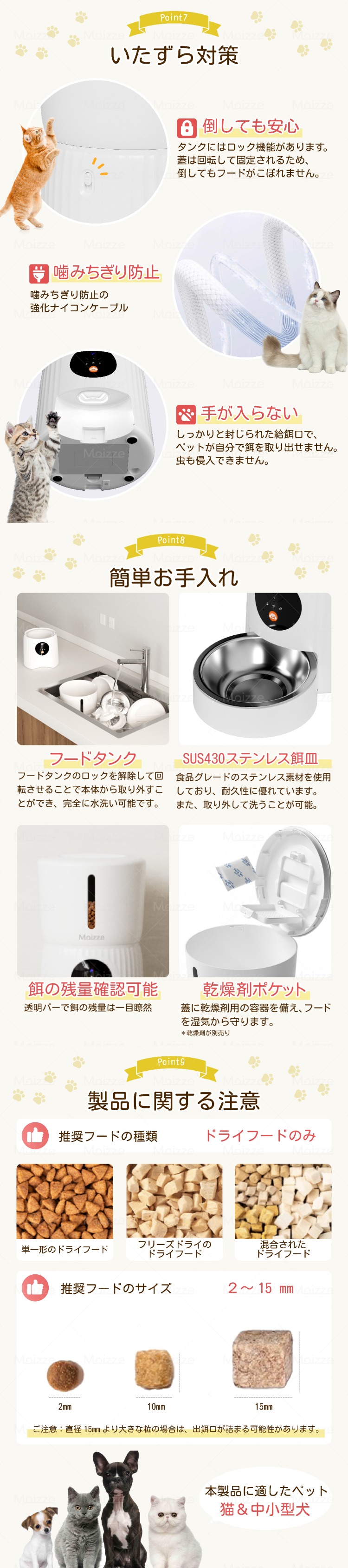 A: ドライフードのみ。最長辺は15mm以内のフードがおすすめです。