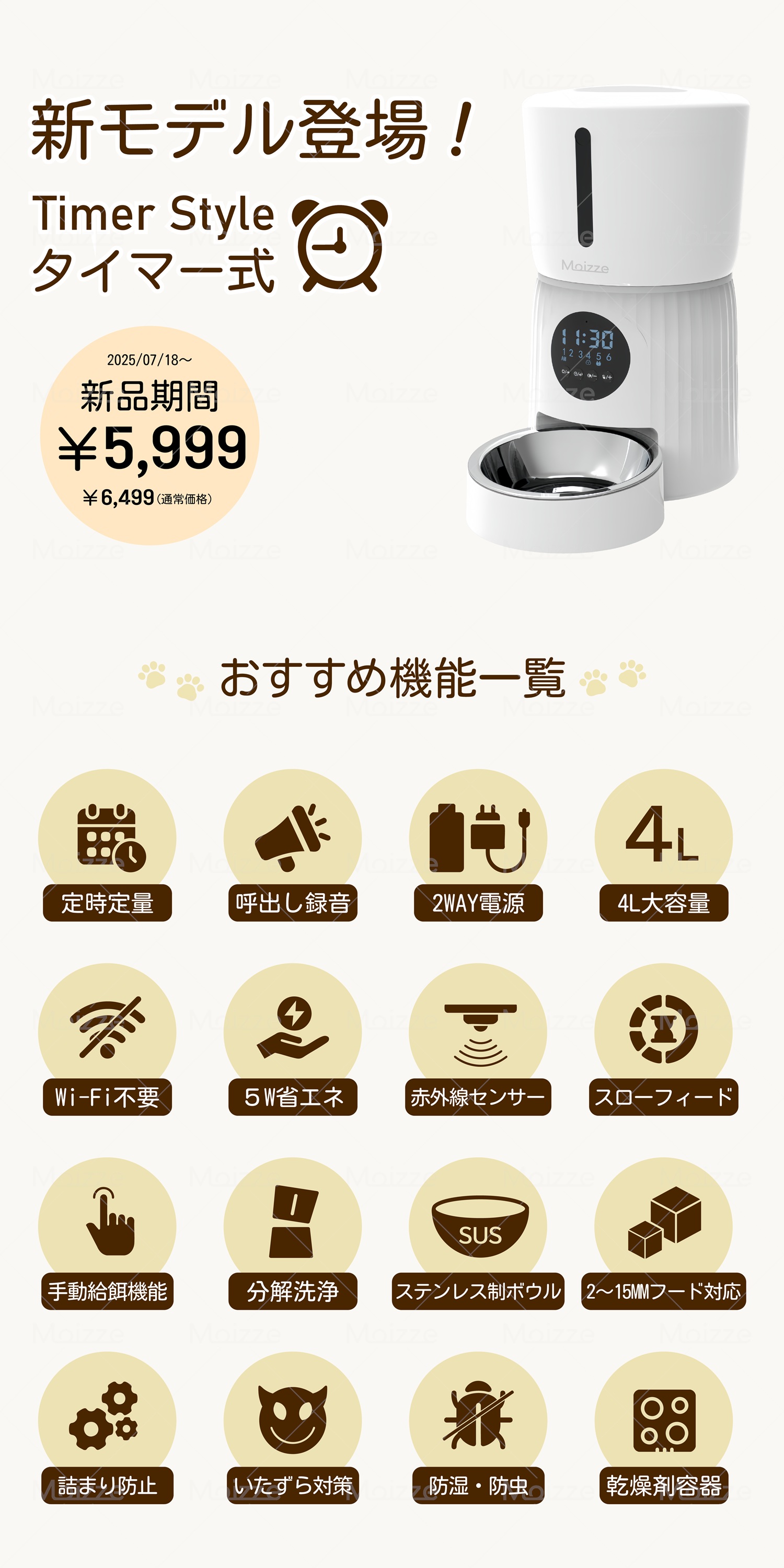 A: ネットワークがなくても設定されたスケジュールに従って給餌を行いますのでご安心ください。