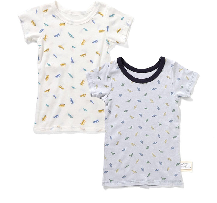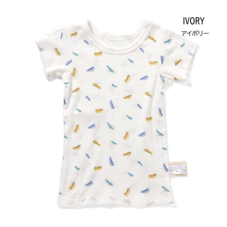 半袖 肌着 フライス 人気 子供服 キッズ ベビー 小物 下着 肌着 インナー 総柄 くるま 乗り物 恐竜 男の子 アンパサンド 90 100 110 120 130 l353075
