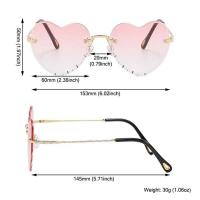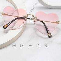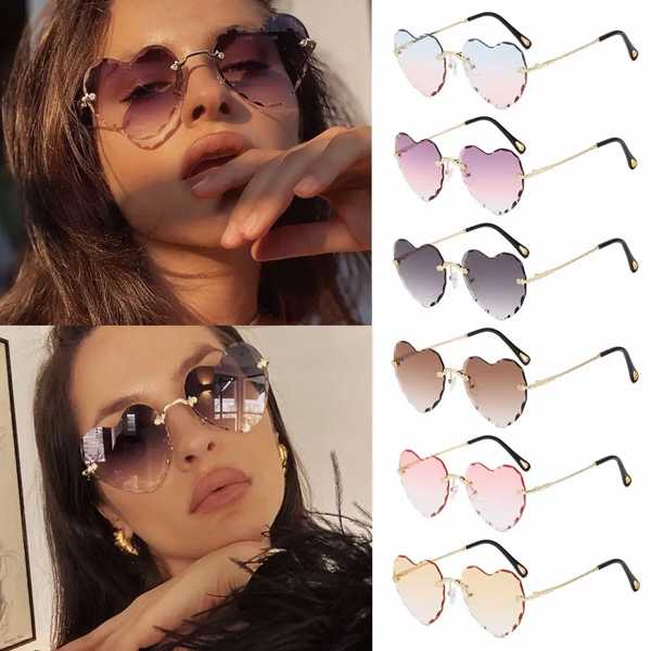 ハート型サングラス フレームなし 薄い金属フレーム ハート型 女性用 UV400