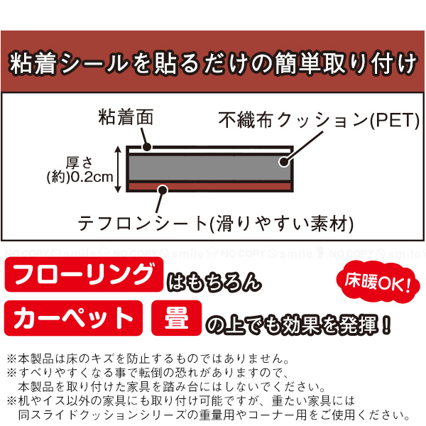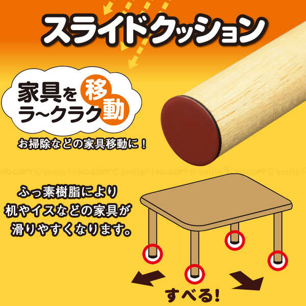 フッ素樹脂により家具やテーブル、イスが滑りやすくなるスライドクッション。