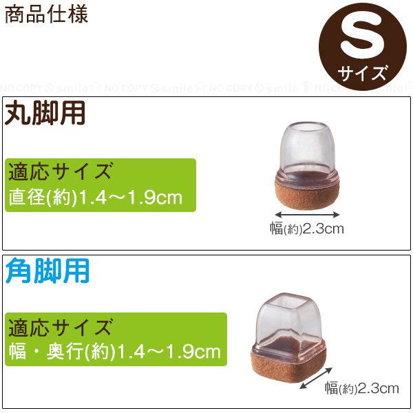 角脚用:(約)幅1.4〜1.9×奥行1.4〜1.9cm