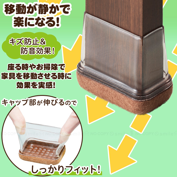 テーブルやイスの脚に取り付ければ、滑りやすくなって移動がラクになります。