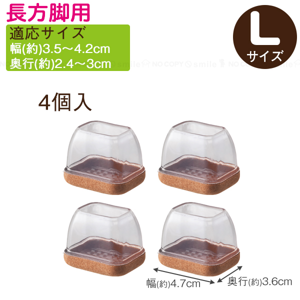 ソフト脚キャップ クリア 長方脚用L KSFT-2435 「コンパクト便」/ 椅子脚 椅子足 カバー キズ防止 防音効果 フェルト 滑る クッション キャップ パッド チェア