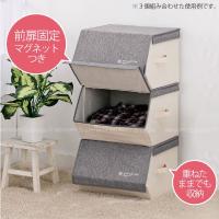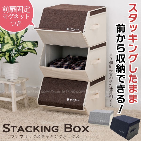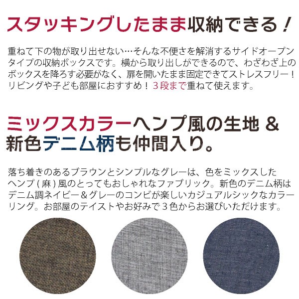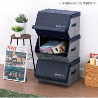 スタッキングしたまま前から収納できる、麻風ファブリックがおしゃれなスタッキングボックスです。
