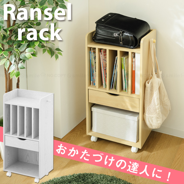 おかたづけ 木製 ランドセル ラック 収納 ワゴン ランドセル置き 教科書 キッズ キッズ収納 整理整頓 インテリア 組立式 メープル ホワイトウォッシュ