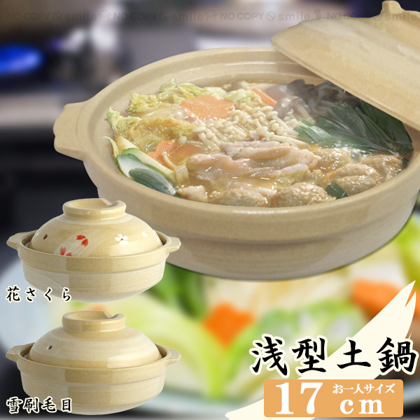 浅型 土鍋 どなべ 17cm 1人 一人鍋 直火 はけめ 刷毛目リビング 陶磁器 鍋料理 刷毛目 花さくら 桜 110608 雪刷毛目 110639 鍋 202210-03